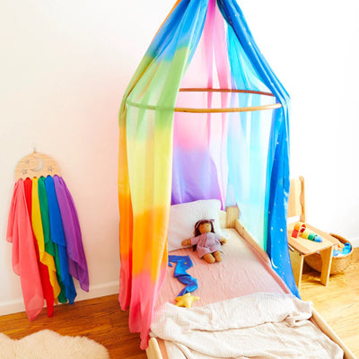 At Sarah’s Silks, the magic of creative play blooms naturally. Their playsilks, crafted from soft, natural fibers, gently inspire children’s imaginations and honor the vibrant soul of childhood. With beautiful, hand-dyed colors, these flowing cloths become treasured treasures for dress-up, storytelling, and endless exploration. Wrapped in these silks, children dive into worlds of wonder, discovering joy and freedom in every fold. A simple, beautiful invitation to play, dream, and create without limits.